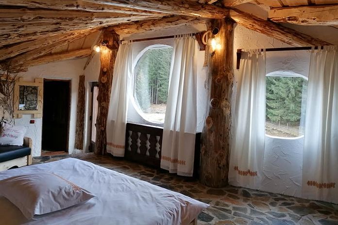 Toate materialele folosite pentru ridicarea acestui proiect magic sunt ecologice și preluate doar din zonă: lemn și piatră locală, acoperiș plin de iarbă verde în sezonul cald. Proprietarul complexului a dorit să își lase amprenta personală asupra proiectului, astfel că a ales să decoreze manual mobila, bârnele și șemineul camerelor.