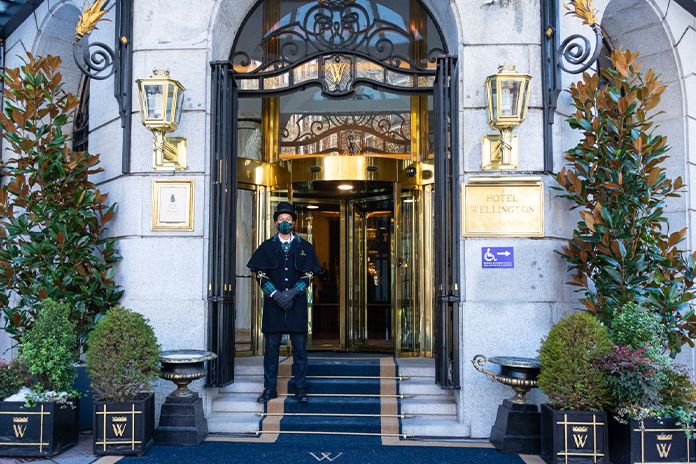 Wellington este un hotel de cinci stele și este unul dintre cele mai renumite hoteluri din Madrid în materie de glamour. Cu mai multe restaurante, inclusiv restaurantul Kabuki cu stele Michelin, o grădină de legume organice pe acoperiș, un spa și o piscină superbă, satisface atât gusturile tradiționale, cât și pe cele contemporane.