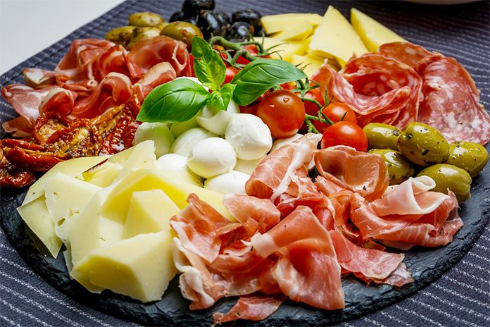 Un prânz tipic italienesc constă în „primo”, care sunt de obicei niște paste. „Secondo” este de obicei carne sau pește, iar „contorno” este salata sau legumele. Cina începe cu „antipasto” care are mezeluri, măsline și anghinare, urmat de paste (primo), carnea (secondo), garnitura (contorno) și desert (dolce).