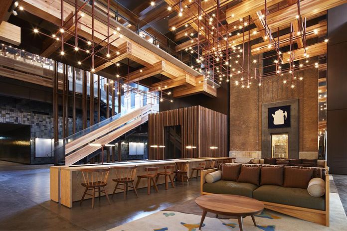 S-au folosit pe scară largă grinzi colosale din lemn și materiale naturale. Recepția este făcută din cupru strălucitor de la Nousaku, companie cunoscută pentru corpurile sale de metal folosite la altarele budiste. Hotelul dispune de cafenele, un cocktail bar și restaurantul italian Maurice, al lui Chef Marc Vetri. O noapte aici ajunge la 400 USD.